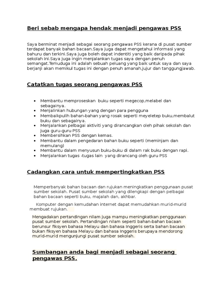 Beri Sebab Mengapa Hendak Menjadi Pengawas Pss Pdf